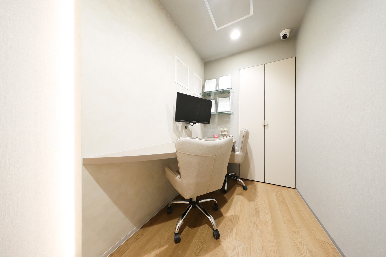 治療前のカウンセリングや治療内容のご説明に使用するスペースです。周囲から仕切られた空間にあるため、話し声が周囲に漏れることはございません。プライバシーは守られております。治療費や治療期間のことなど、不安なことは何でも気兼ねなくご相談ください。